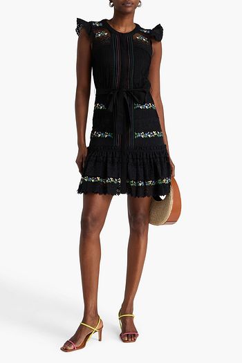 Carly lace-paneled cotton-blend mini dress