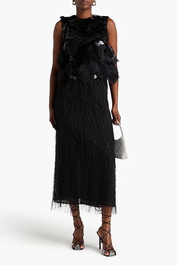 Embellished satin-twill top