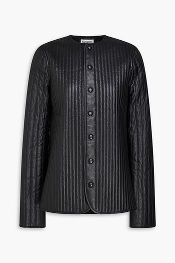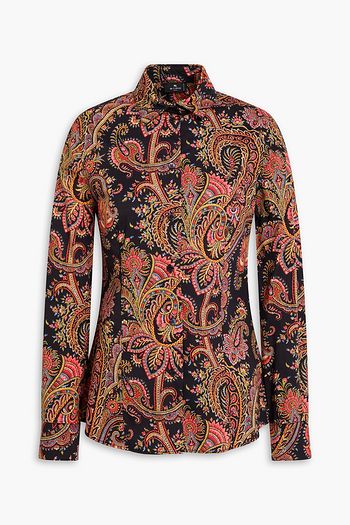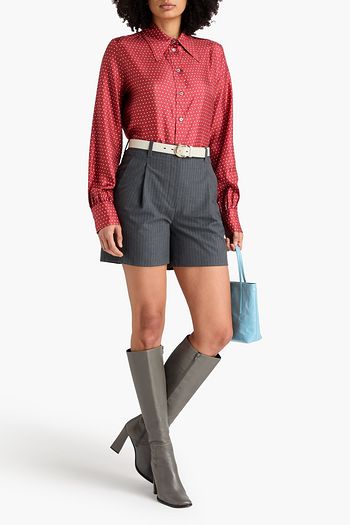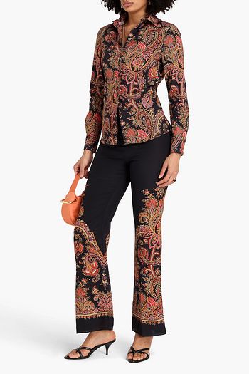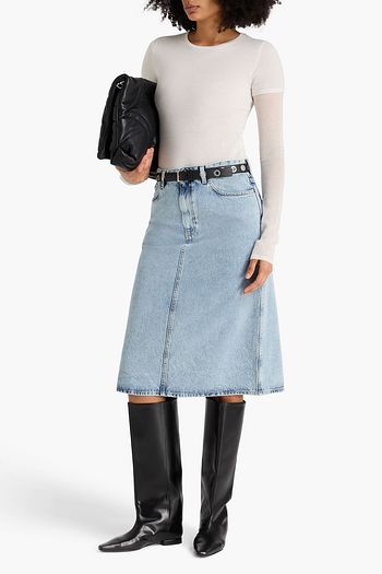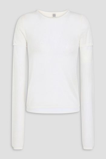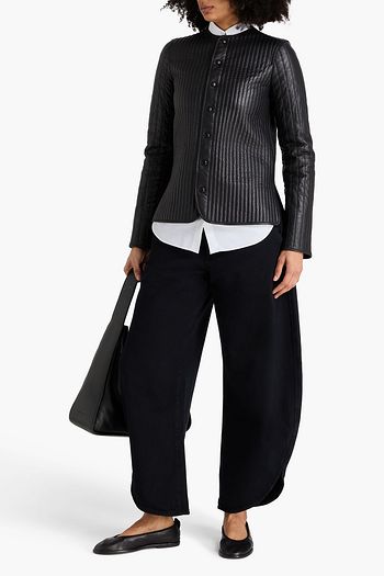 Poplin-paneled ribbed wool-blend turtleneck sweater