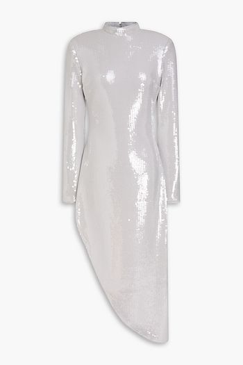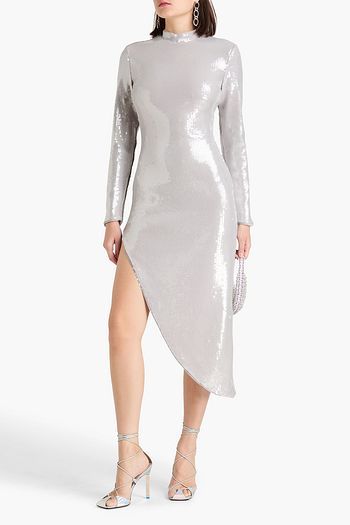 Asymmetric silk crepe de chine midi dress