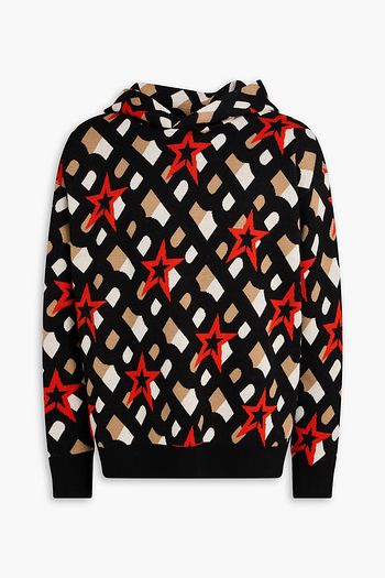 Houndstooth jacquard-knit cotton zip-up hoodie