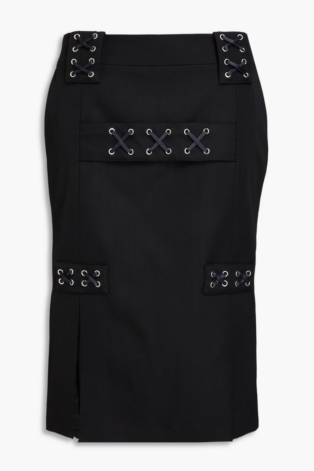 ALESSANDRA RICH Lace-up wool-blend crepe skirt