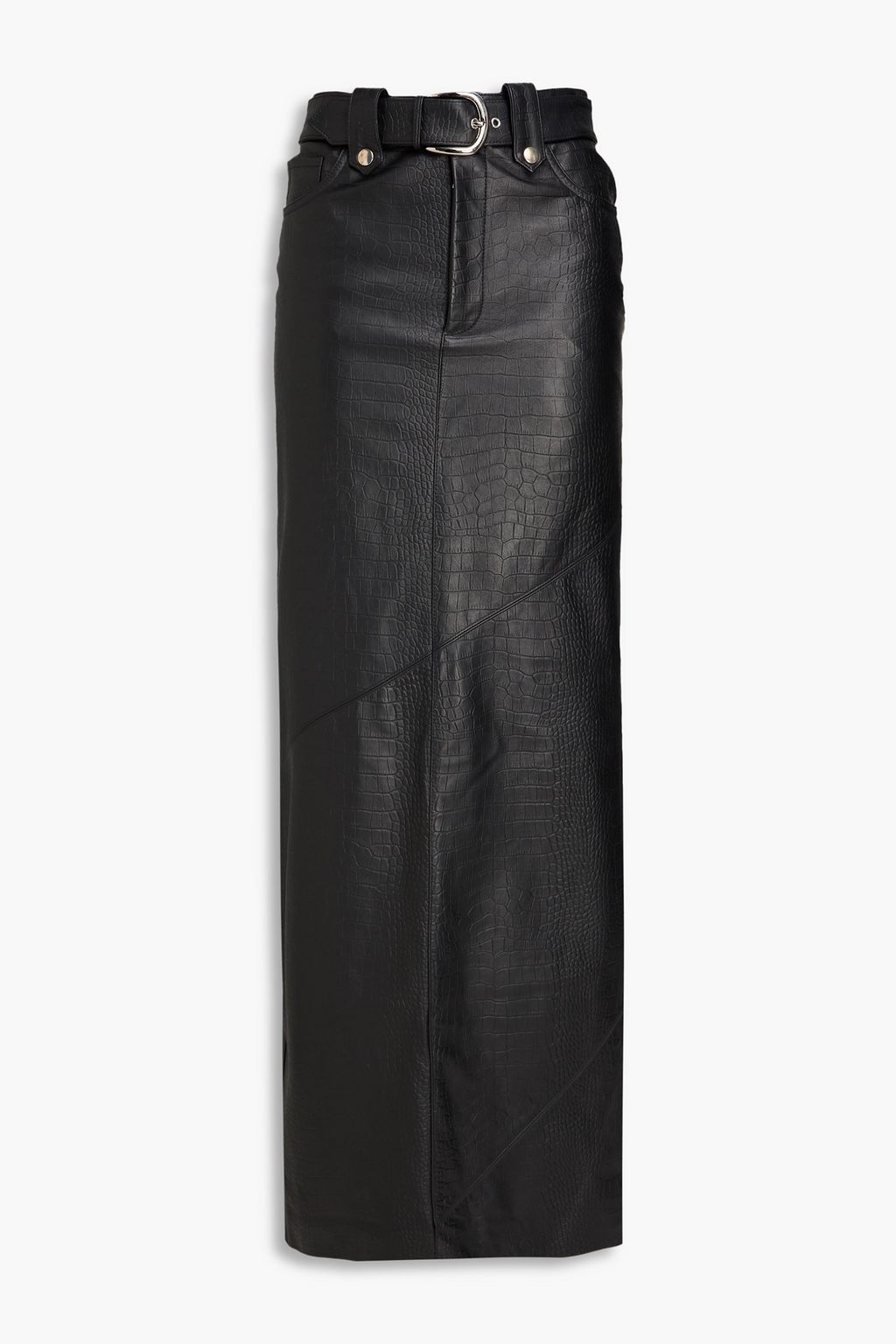 ALESSANDRA RICH Belted croc-effect leather maxi pencil skirt
