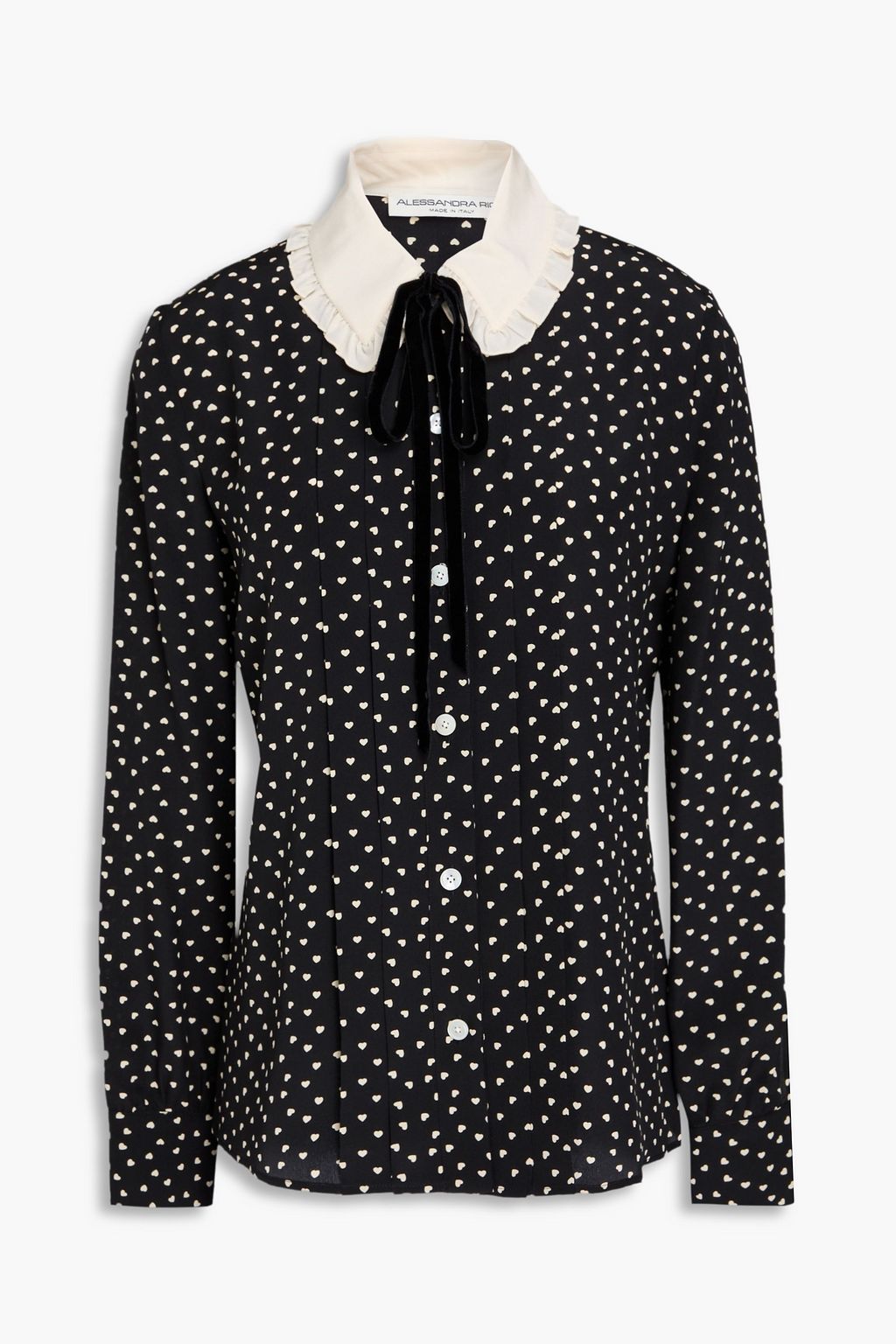 ALESSANDRA RICH Velvet-trimmed printed silk crepe de chine blouse