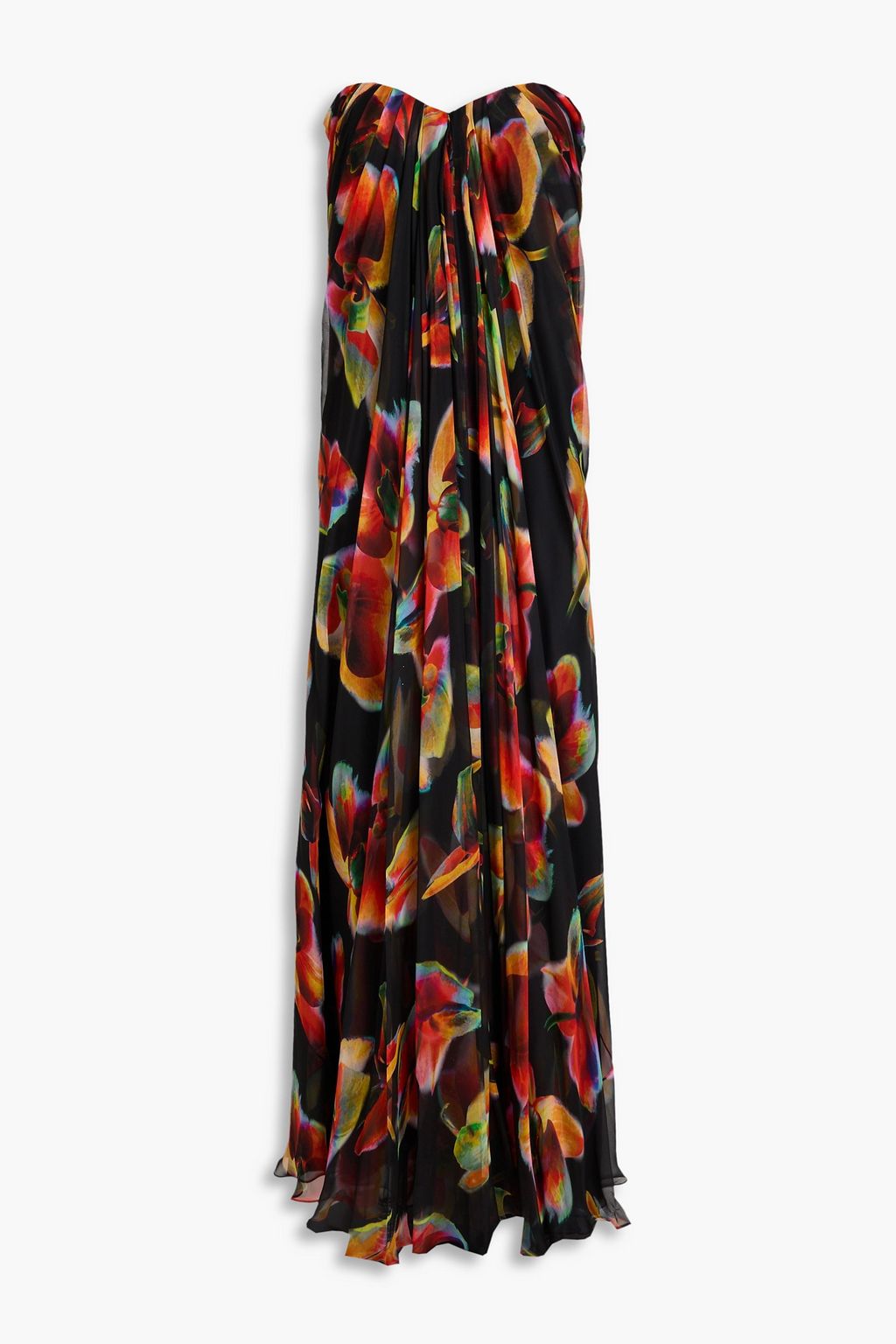 MCQUEEN Strapless printed silk-chiffon maxi dress