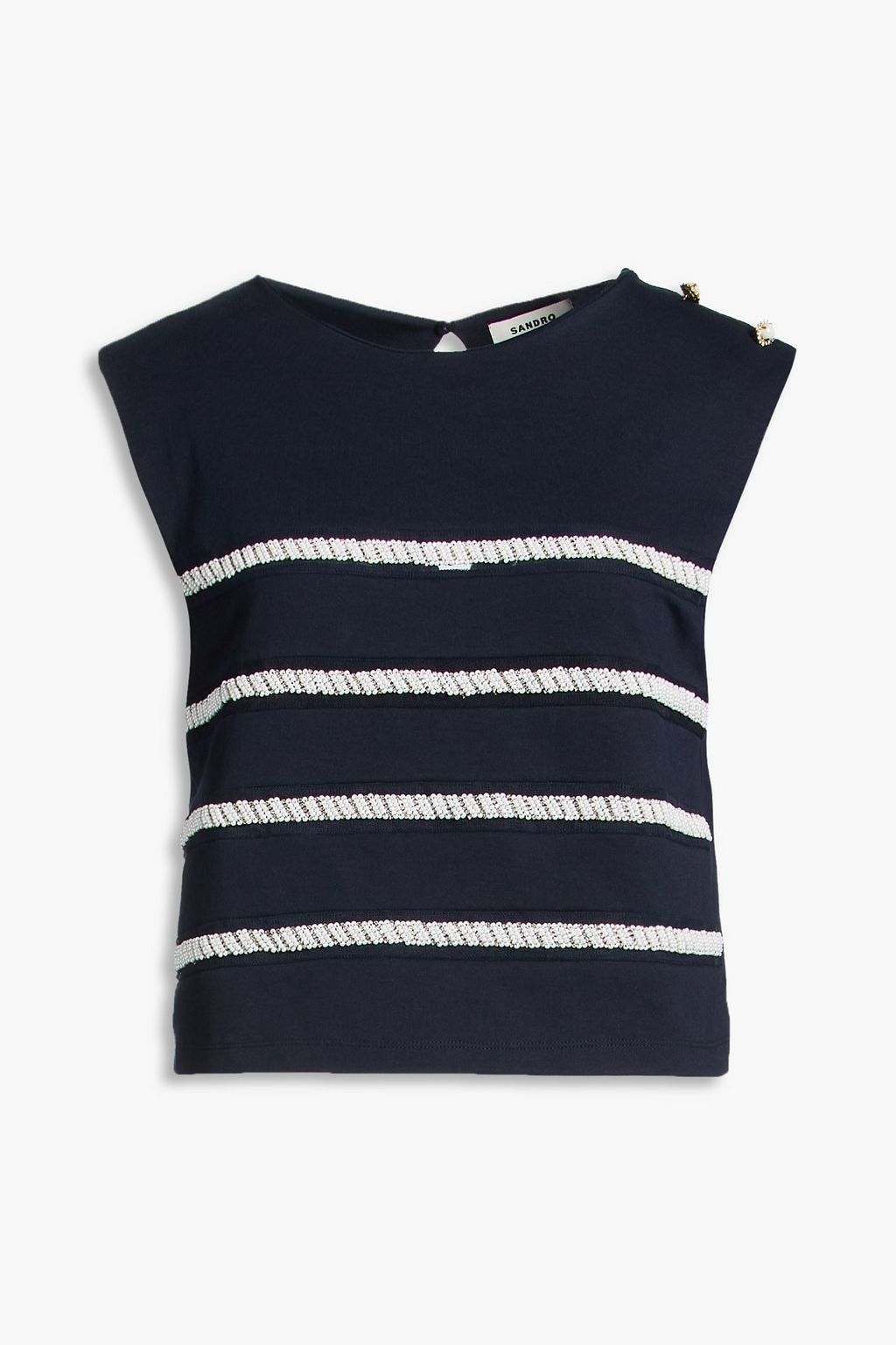 SANDRO Embellished cotton-blend jersey top