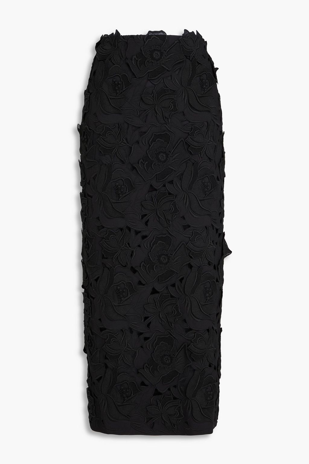 VALENTINO GARAVANI Floral-appliquéd wool and silk-blend crepe midi skirt