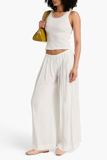 Tanya broderie anglaise cotton and linen-blend wide-leg pants