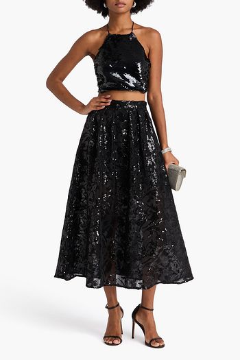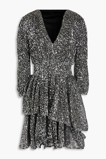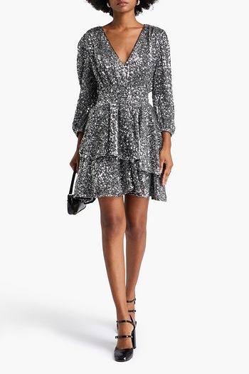 Tiered sequined tulle mini dress