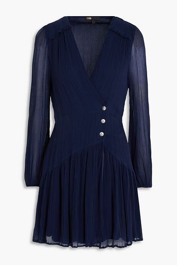Pussy-bow satin-twill mini dress