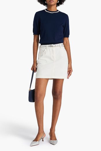 Crochet-trimmed cotton-twill mini dress