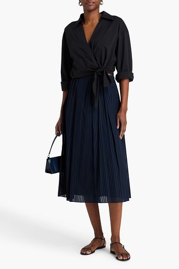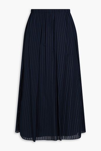 Pleated striped cotton-voile midi skirt