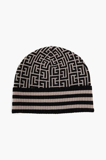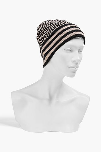 Two-tone ribbed merino wool and cashmere-blend beanie