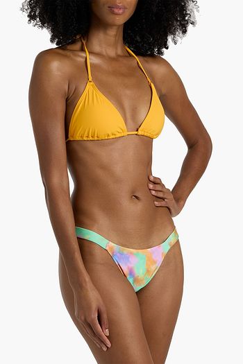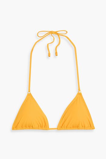 Embellished printed bandeau bikini top
