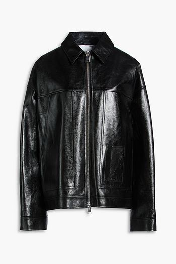 Cropped crinkled leather jacket