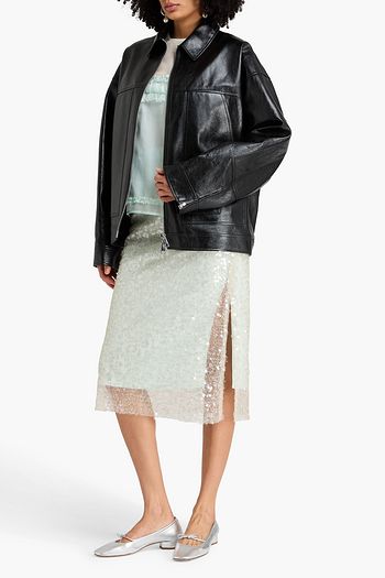 Pleated leather biker jacket