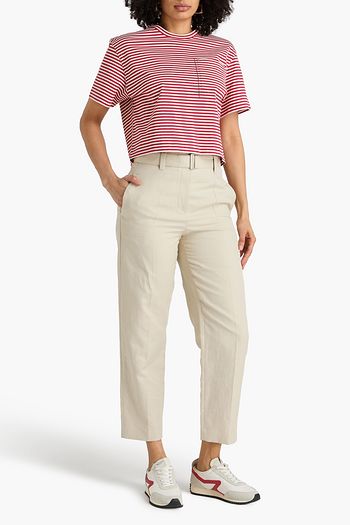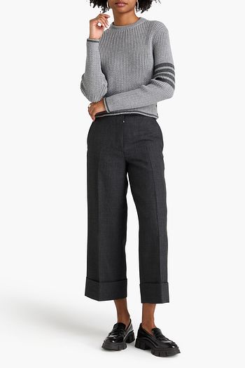 Embellished cotton-blend bouclé-tweed wide-leg pants