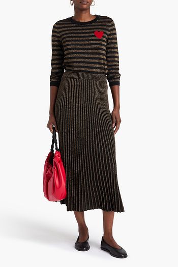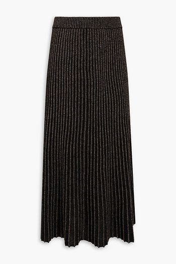 Metallic ribbed-knit midi skirt