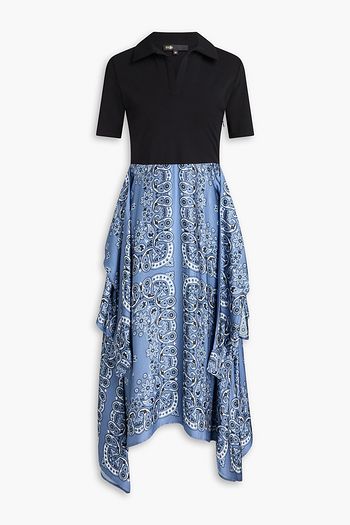 Draped paisley-print satin-twill and stretch-cotton jersey midi dress