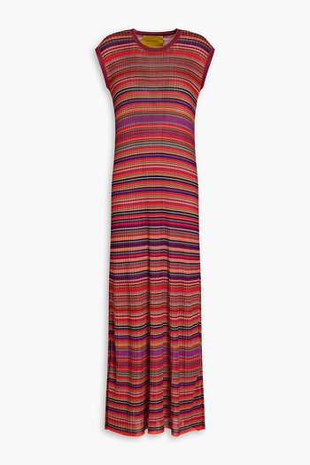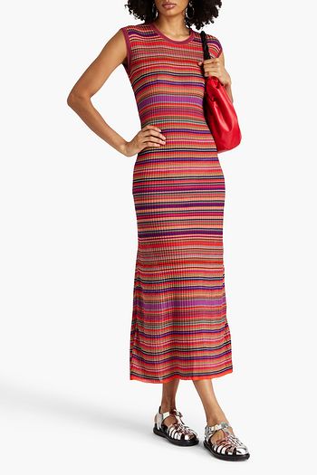 Striped ribbed-knit midi dress