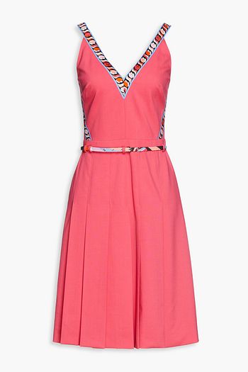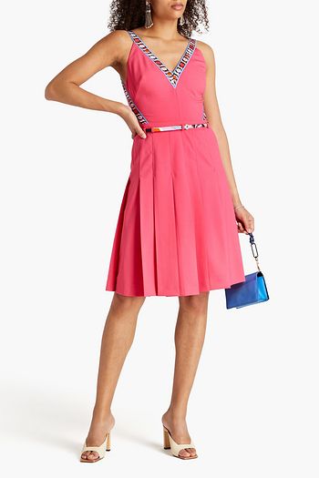 Pleated wool-blend crepe dress