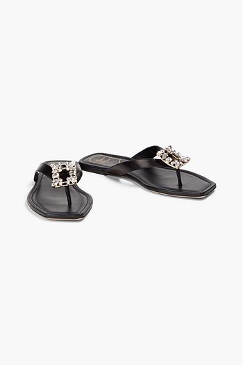 Crystal-embellished leather sandals