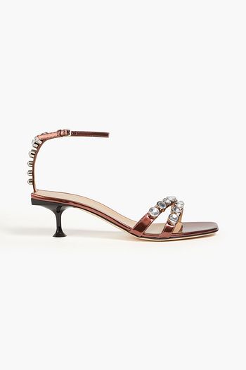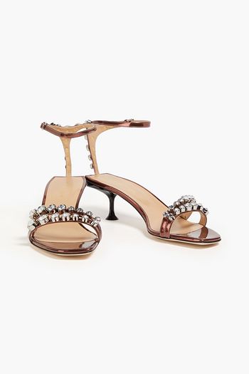 Crystal-embellished metallic leather sandals