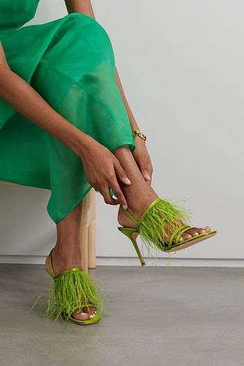 Anise feather-trimmed satin sandals