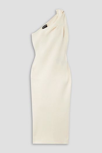 Embellished cutout metallic ribbed cotton-blend midi dress