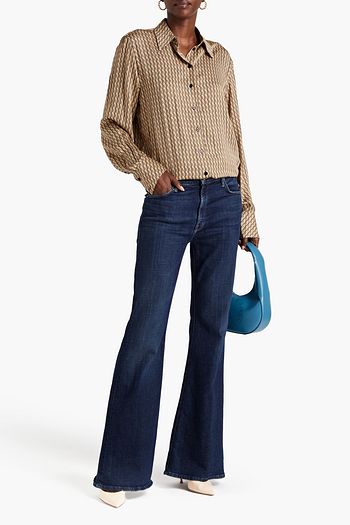 Asymmetric crepe-paneled ribbed-knit midi dress