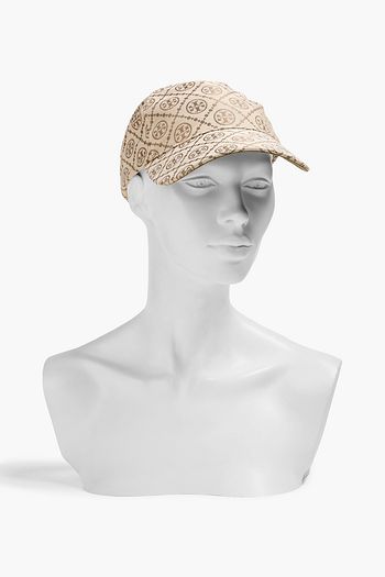 Feather-embellished straw sun hat