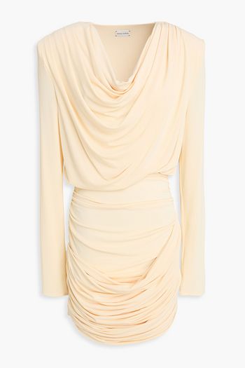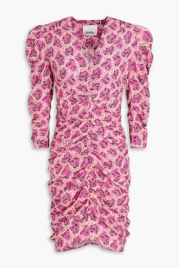 Bow-embellished velvet-trimmed wool and silk-blend crepe mini dress