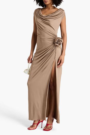 Silvana embellished printed metallic fil coupé silk-chiffon maxi wrap dress