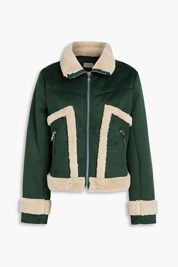 Leather-trimmed cotton-blend twill jacket