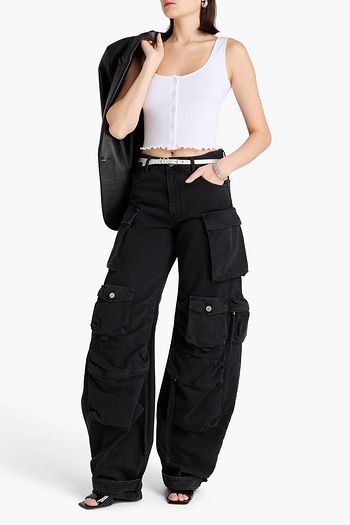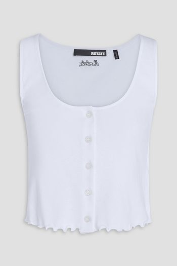 Silk satin-trimmed ribbed stretch-modal jersey tank