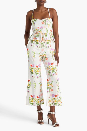 Luisa cropped lace-trimmed cotton-poplin wide-leg pants