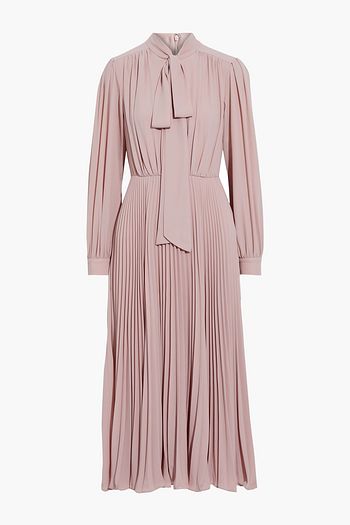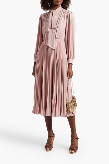 Bow-detailed crinkled cotton-blend jacquard midi dress