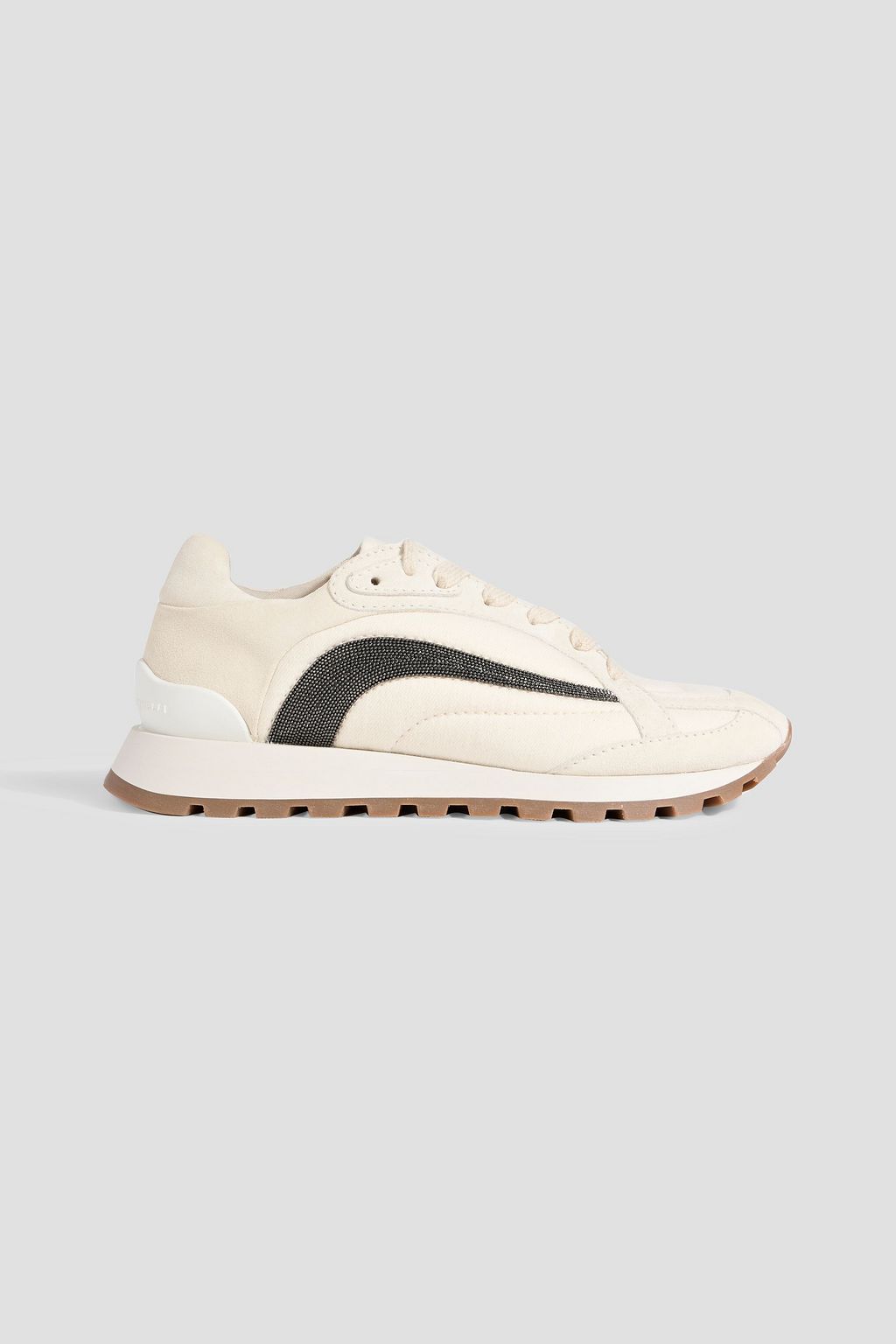 BRUNELLO CUCINELLI Bead-embellished canvas and suede sneakers