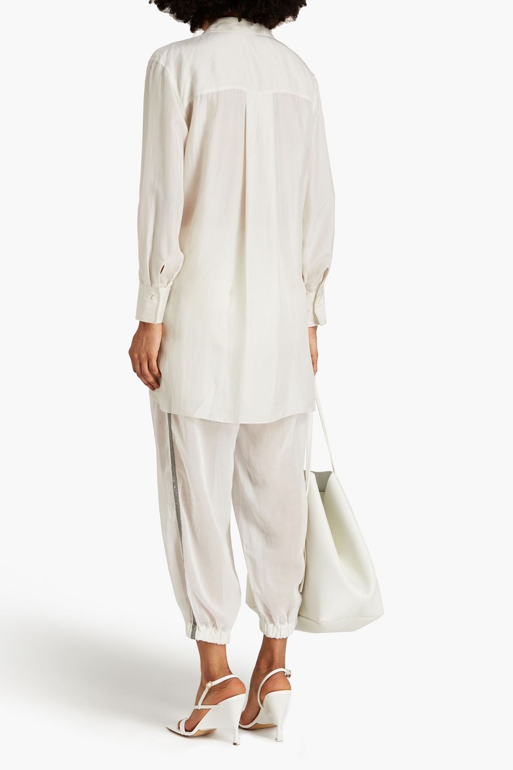 BRUNELLO CUCINELLI Bead-embellished silk crepe de chine shirt
