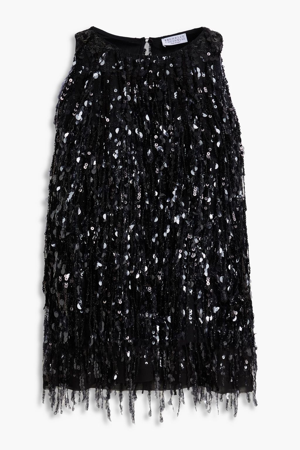 BRUNELLO CUCINELLI Fringed sequin-embellished silk-organza top