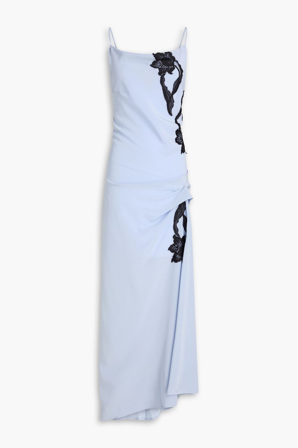 ESSE STUDIOS Rosa draped lace-trimmed silk crepe de chine midi dress