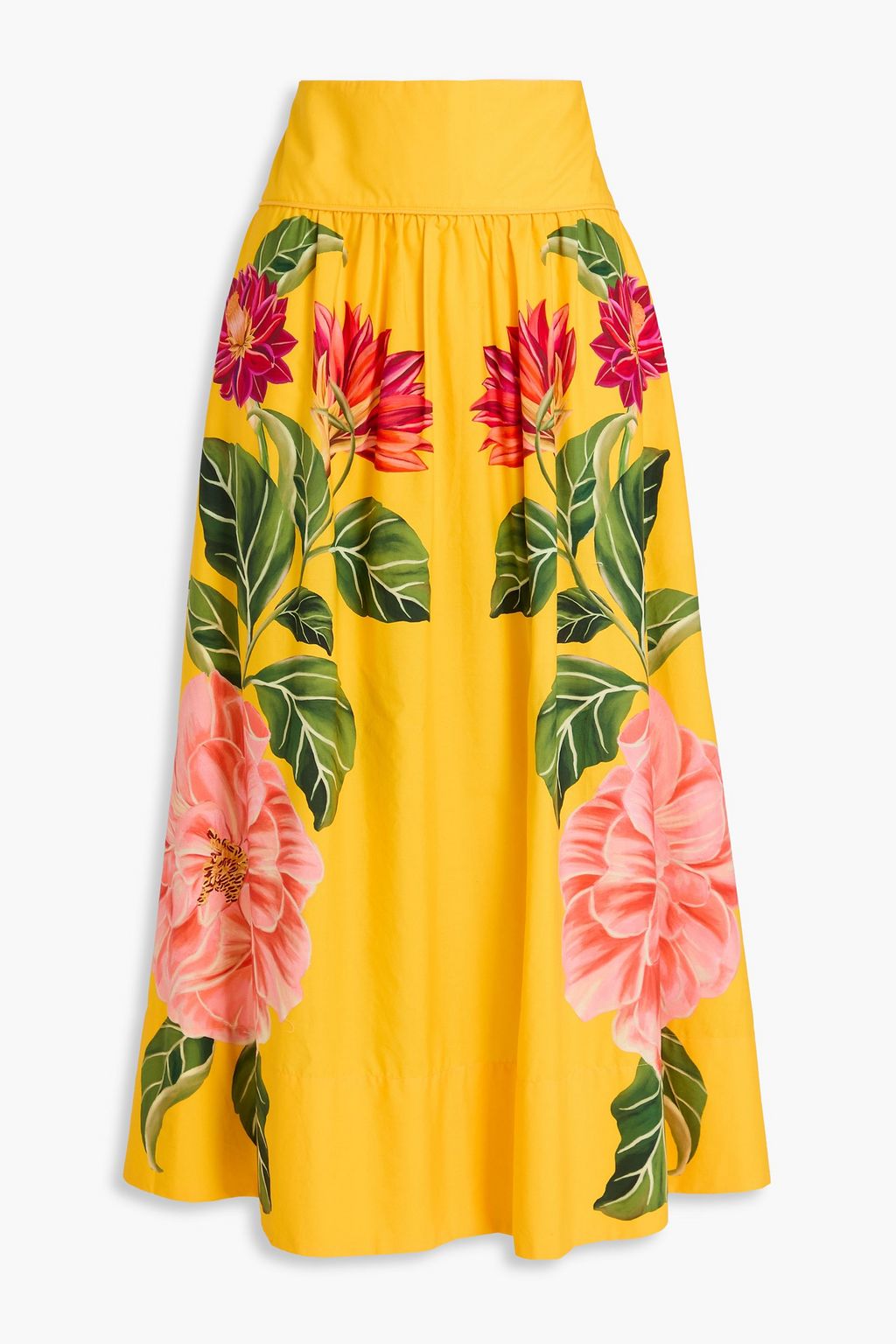 FARM RIO Floral-print cotton-poplin midi skirt