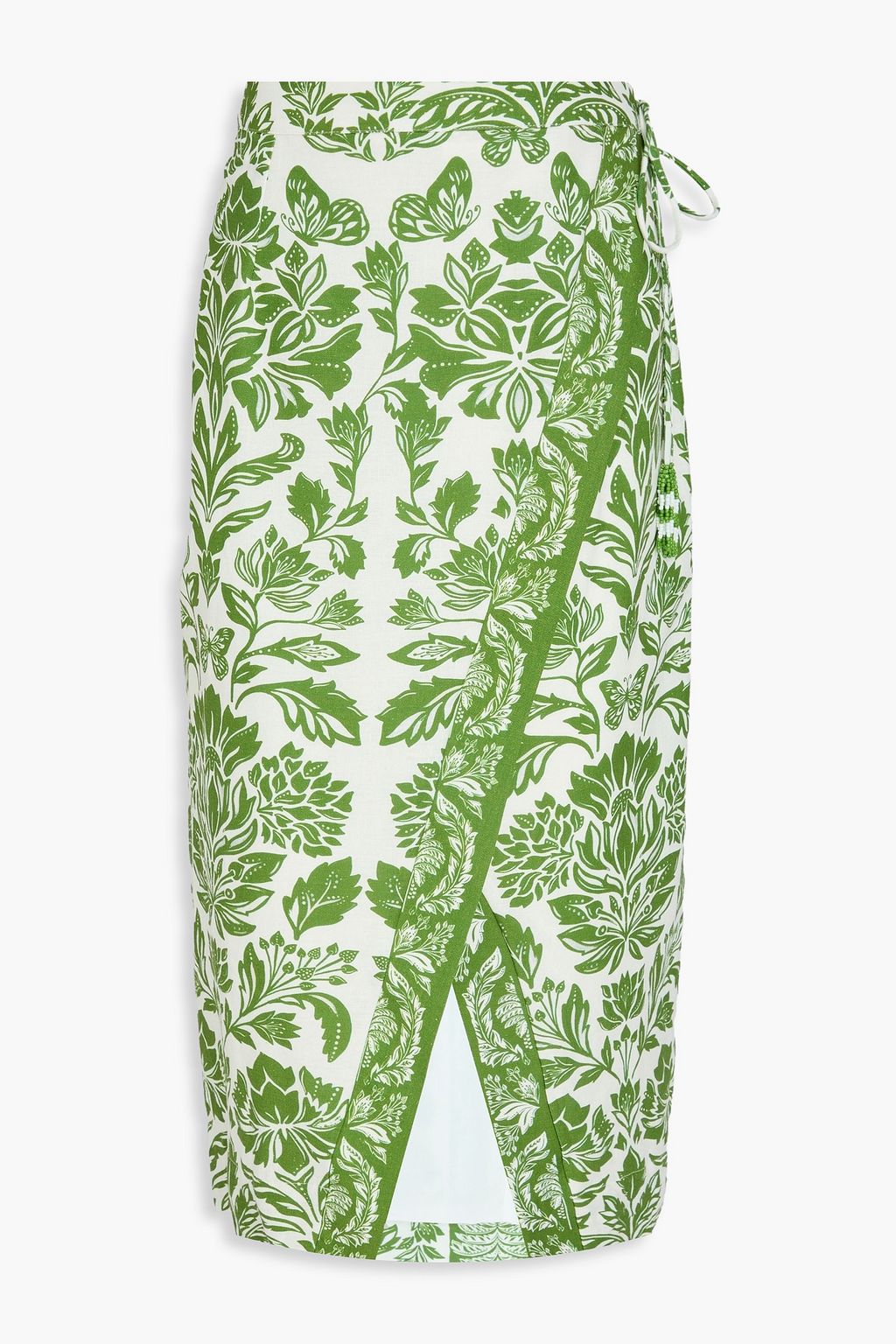 FARM RIO Floral-print linen-blend midi wrap skirt