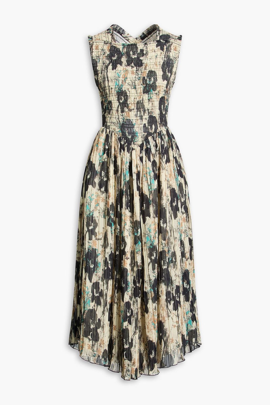 GANNI Pleated printed crepe de chine midi dress