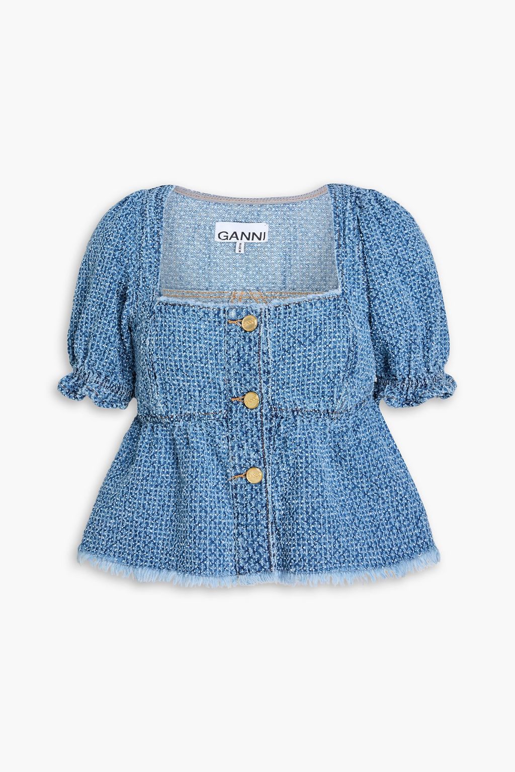 GANNI Frayed denim top