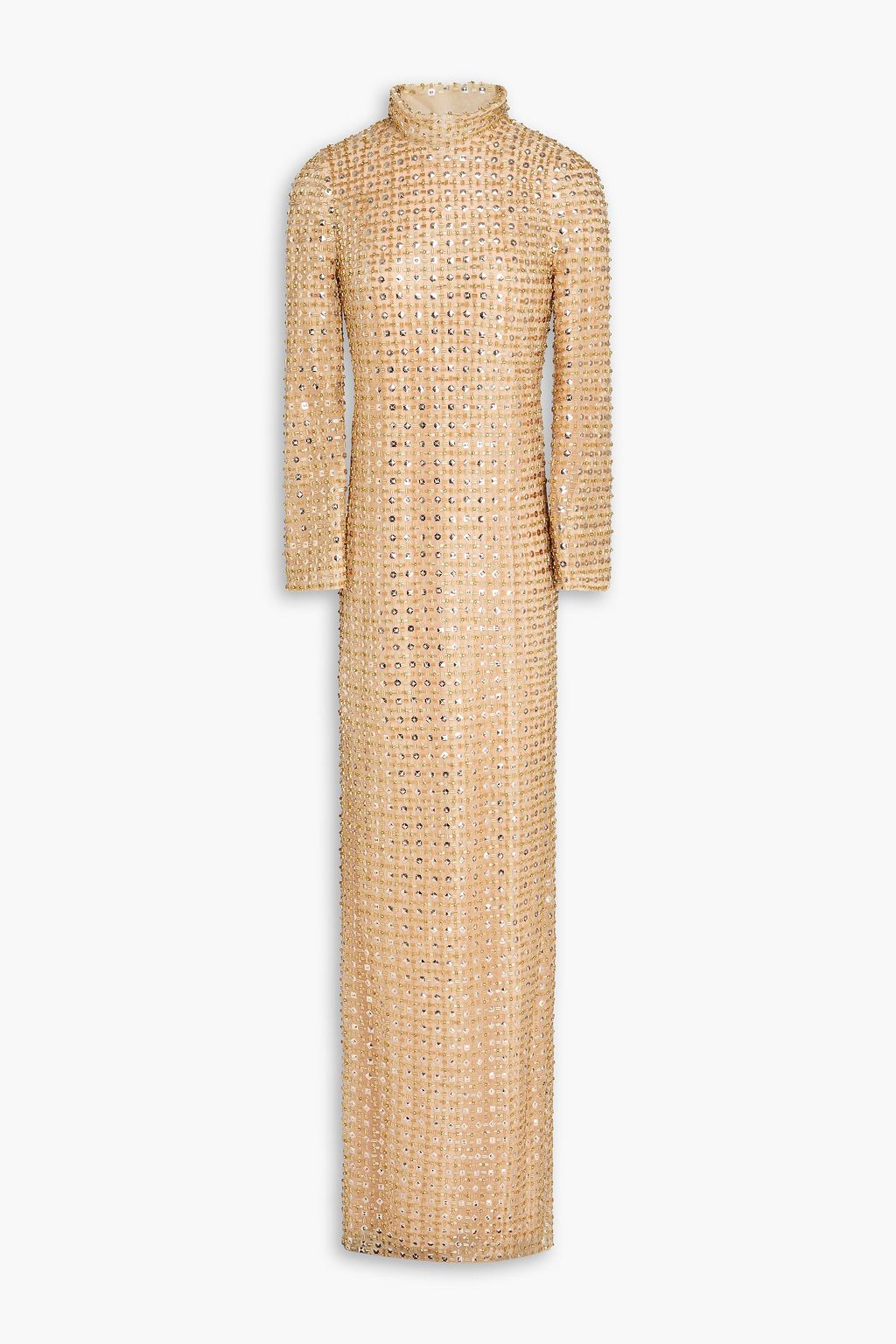 Catch eyes all night in this intricately embellished floor-sweeping design