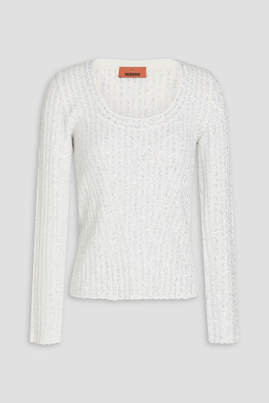 MISSONI Sequin-embellished ribbed crochet-knit sweater