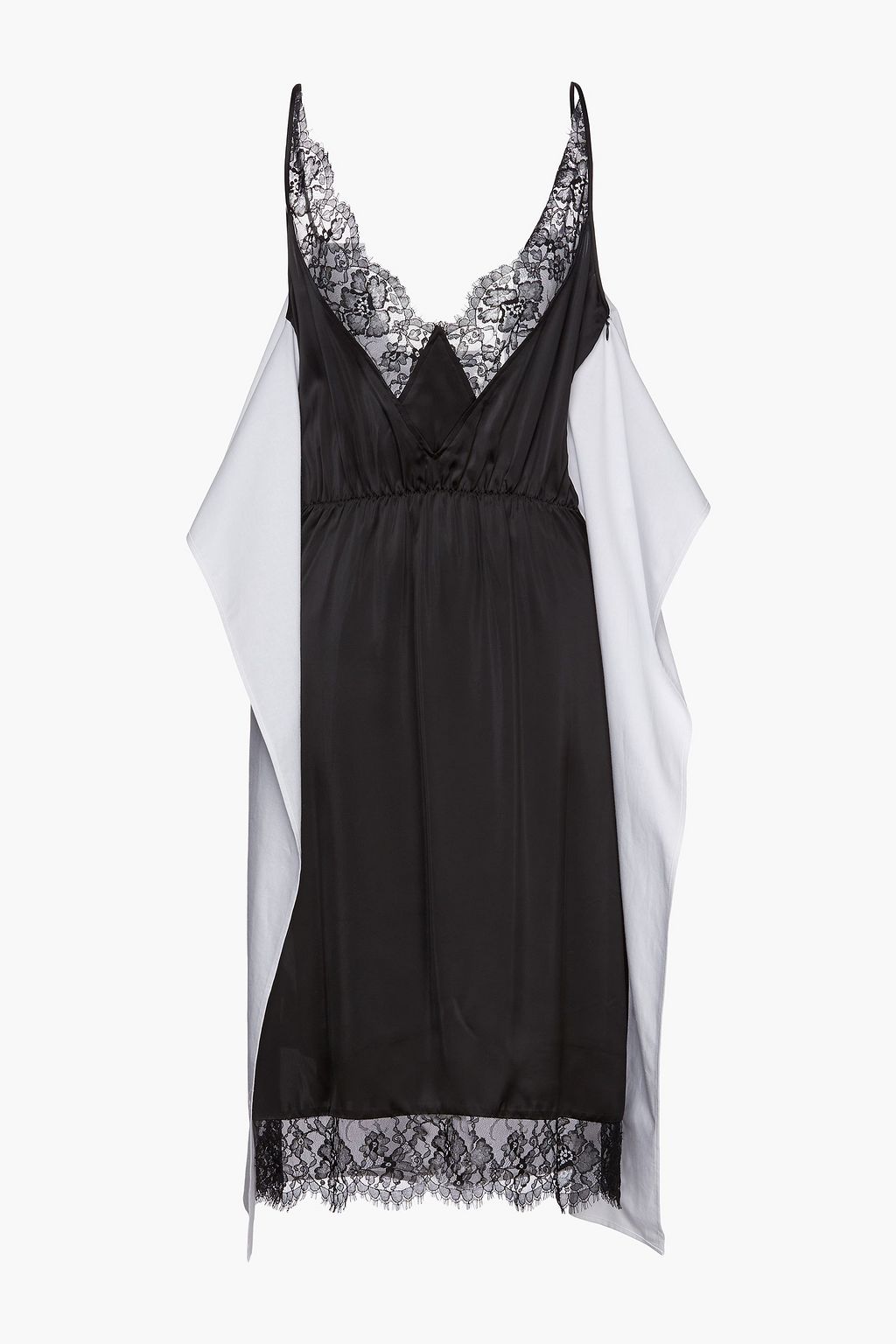 MM6 MAISON MARGIELA Paneled lace-trimmed satin and cotton midi dress