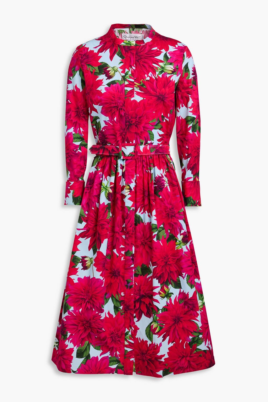 OSCAR DE LA RENTA Belted floral-print stretch-cotton poplin midi dress