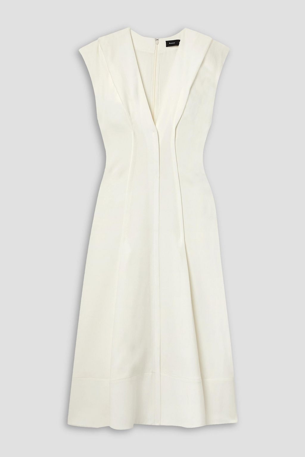 Proenza Schouler's pleated dress is designed with adjustable buttons along the midi skirt - you can leave them undone to create a split and enhance the elegant movement. It's made from white crepe and has a plunging V-neckline and angular shoulders. Wear yours with knee boots or sandals.